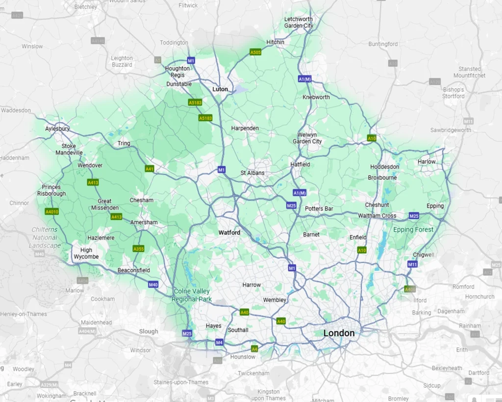 We regularly operate services to and from nearby areas including High Wycombe, Milton Keynes, Princes Risborough, Wendover, Tring, Leighton Buzzard, Luton, Amersham, Chesham, and across Hertfordshire and Bedfordshire, as well as longer-distance journeys throughout the UK.
